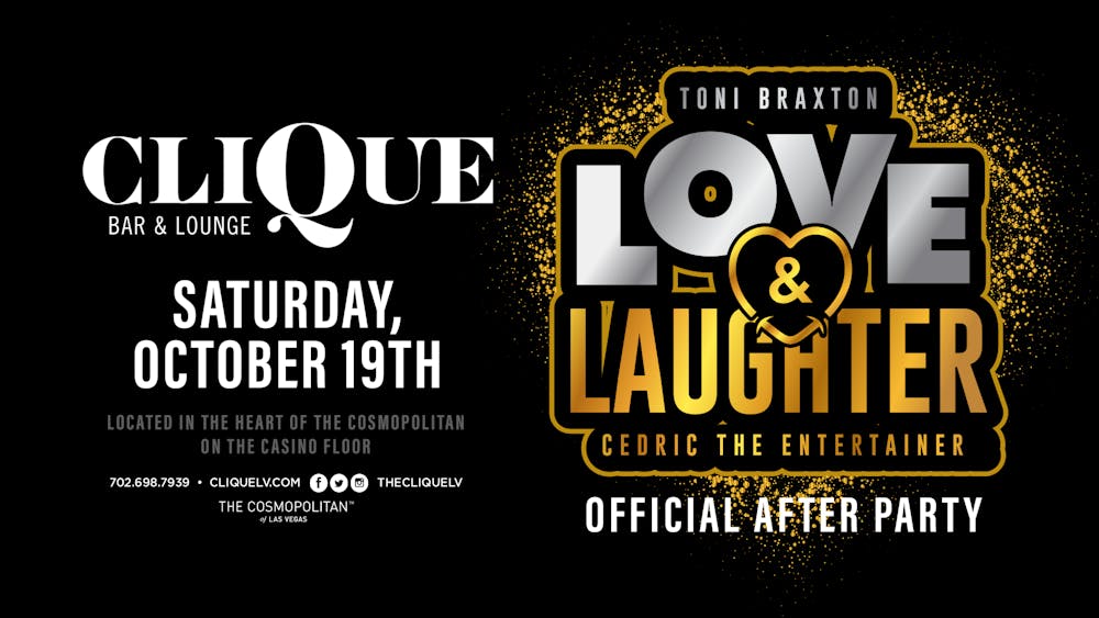 As Love and Laughter returns to The Chelsea Theater at The Cosmopolitan of Las Vegas this October, Clique Bar & Lounge is excited to once again partner with the show to host the official after party on Saturday, October 19th. This special event will be the ultimate way to keep the energy alive after the unforgettable night of music and comedy featuring Toni Braxton and Cedric “The Entertainer”.